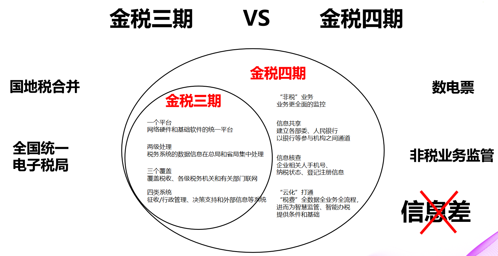 金税三期已经在一定程度上覆盖其他部门联网,金税四期就是在原有的程度上更深。
