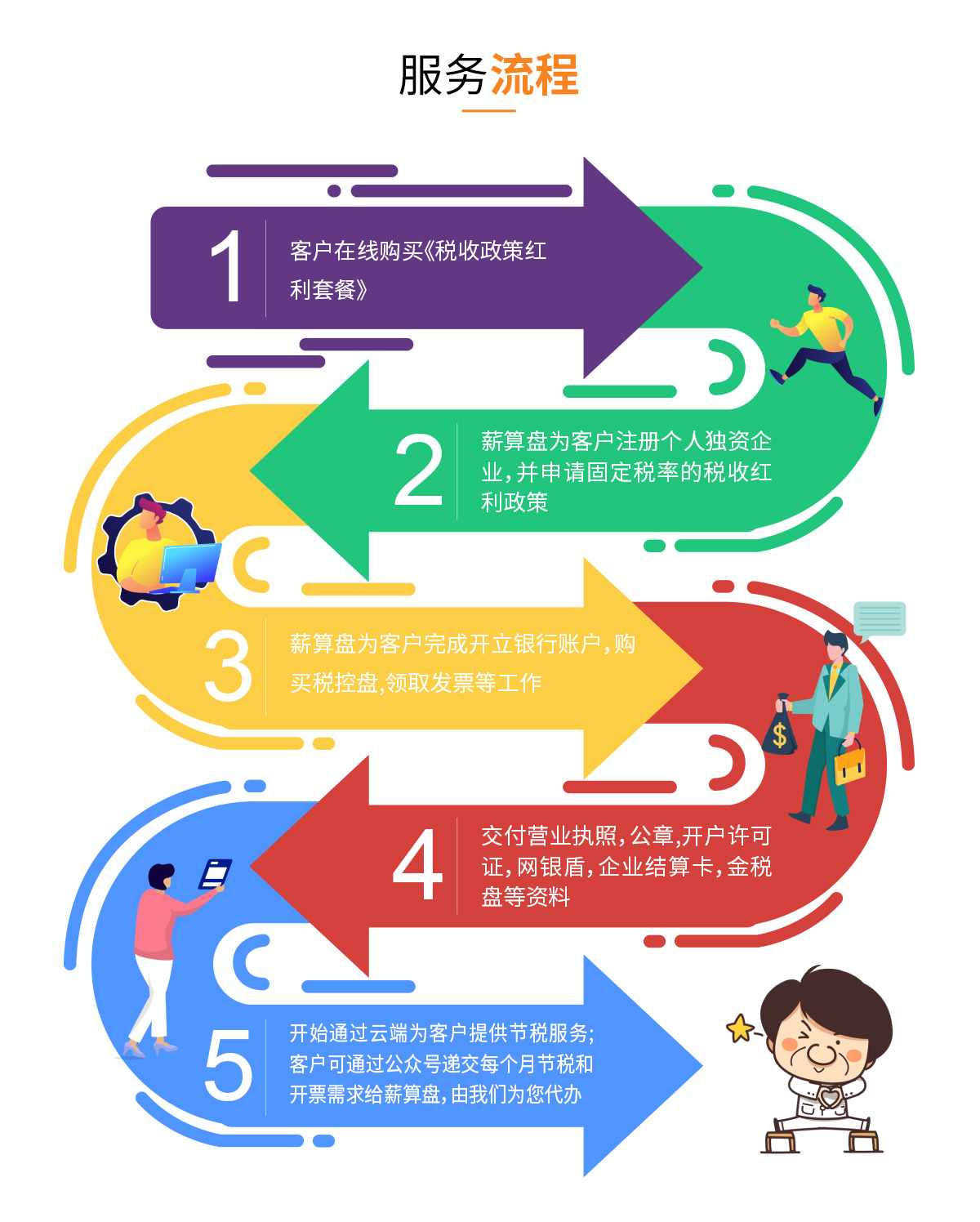 以现代服务业为例,个人独资企业年收入36万元以下,税率为0.5%。个人独资企业年收入36~500万,税率为6%。 地方政府紧密战略合作,保障税收优惠政策落地执行效果。